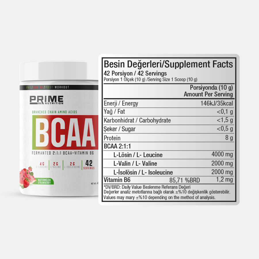 Prime Bcaa her porsiyonda 8 gram 2:1:1 oranında Fermente Bcaa sunar.